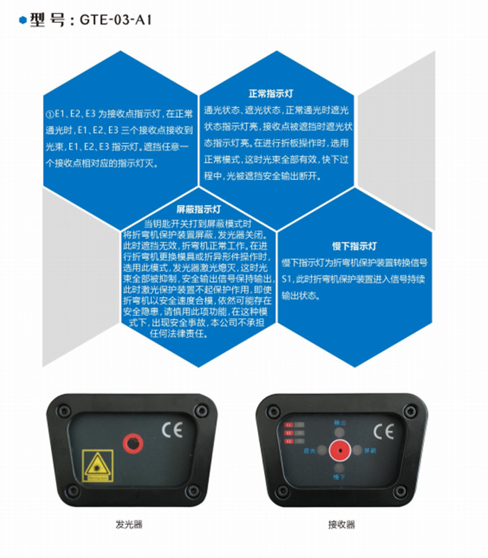 3、折弯机保护装置光纤GTE-GX控制器和绿色GTE-BC保持控制器可选。